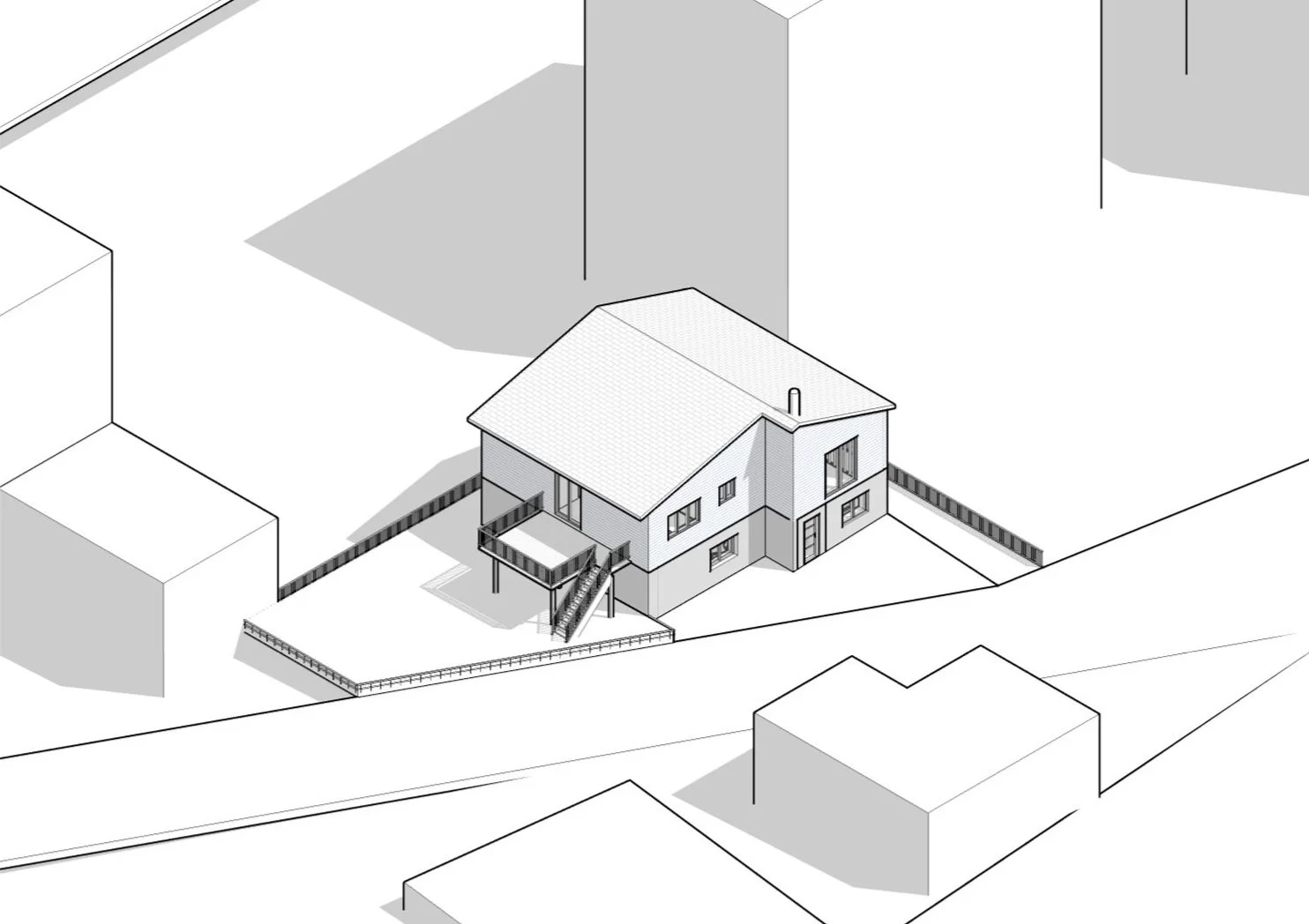 Réalisation d’un permis de construire pour une maison d’habitation au sein d’une parcelle en longueur.
